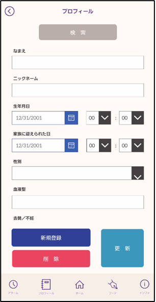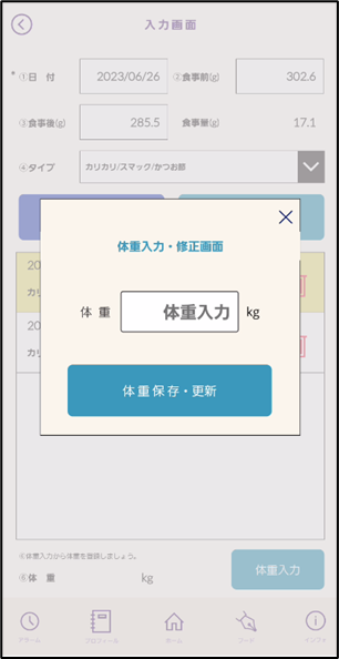 日々の食事量や体重を管理しておきたい愛犬・愛猫のプロフィールを入力します。
